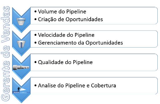 - Revisão do Pipeline: Qualidade, nível de cobertura, ciclo de venda, velocidade, etc.;